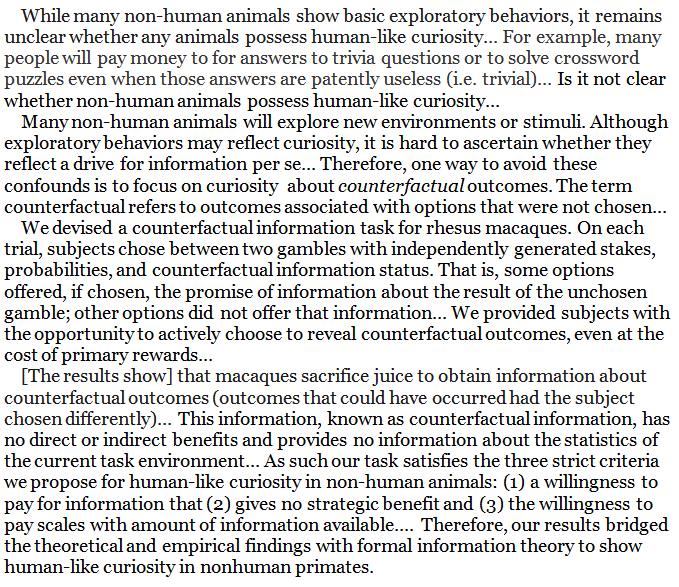 Curious critters: Monkeys are willing to incur costs just to find out how things would have turned out if they had chosen otherwise. https://www.biorxiv.org/content/early/2018/03/29/291708 …pic.twitter.com/SxPga5Q52D