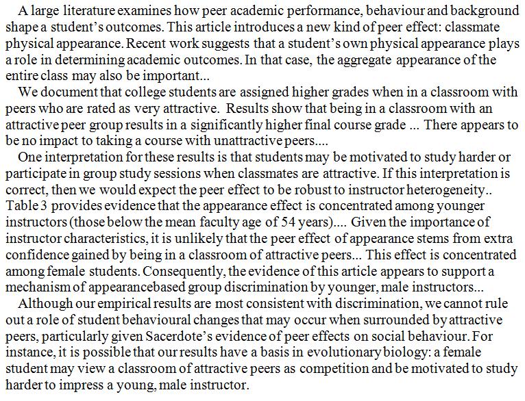 "We document that college students are assigned higher grades when in a classroom with peers who are rated as very attractive." https://www.tandfonline.com/doi/full/10.1080/13504851.2017.1380282 …pic.twitter.com/NR6nTiJe6D