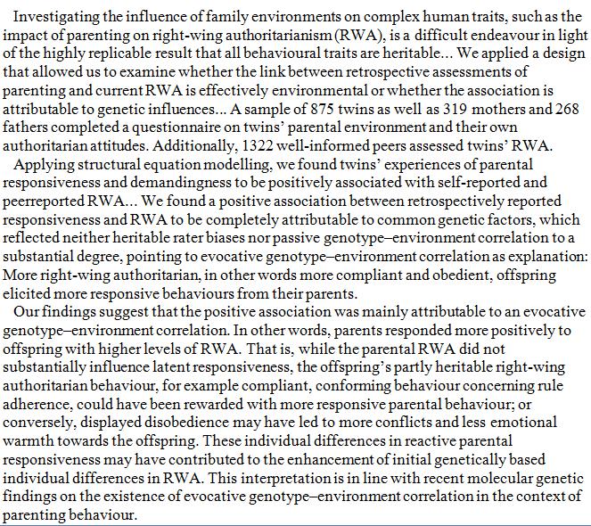 Authoritarians parents begets more authoritarians babies?