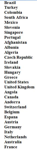 Country Code For customers of