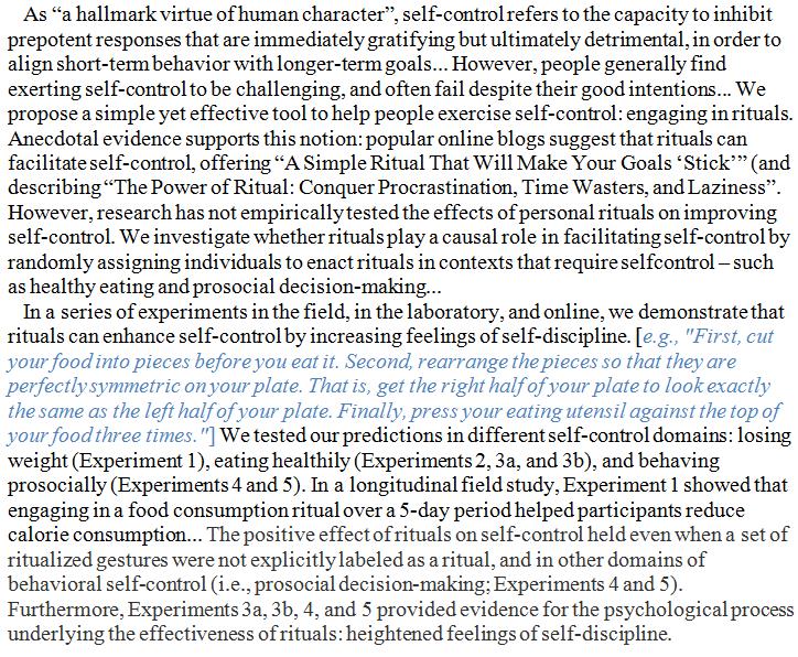 Merely performing a ritual before getting started helped people eat more healthily, lose weight and act more prosocially. http://psycnet.apa.org/record/2018-22169-001 …pic.twitter.com/e8o3GOfcxH