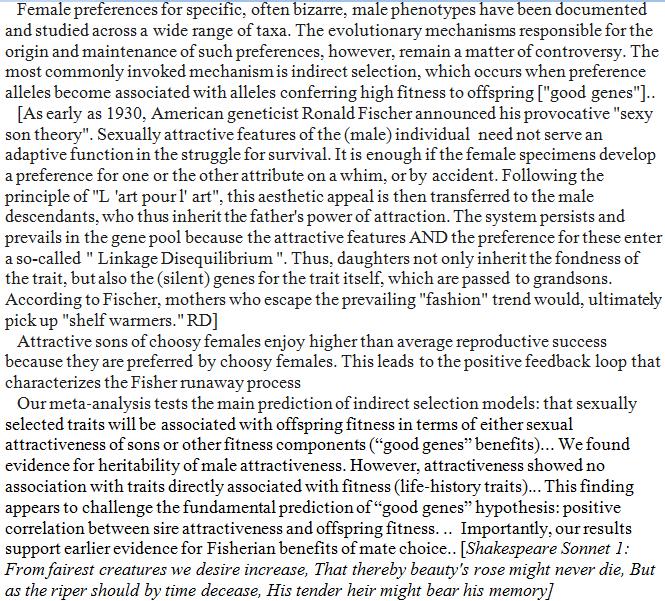 The idea that sexually attractive (male) features are handicaps, indirectly signalling genetic quality, is seductive, but poses its own intellectual difficulties. https://www.amazon.com/Evolution-Beauty-Darwins-Forgotten-Theory/dp/0385537212/ref=sr_1_1?s=books&ie=UTF8&qid=1494698605&sr=1-1&keywords=darwin+beauty …pic.twitter.com/N4x3j8TXBA