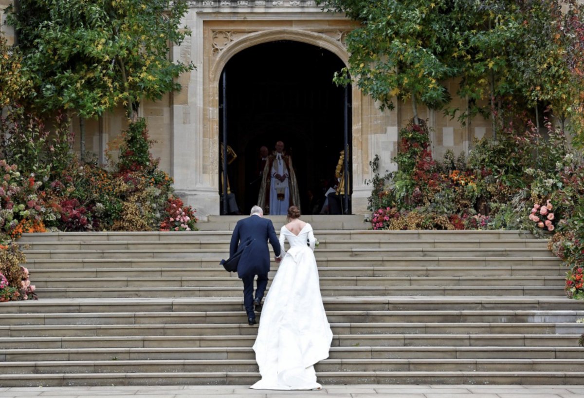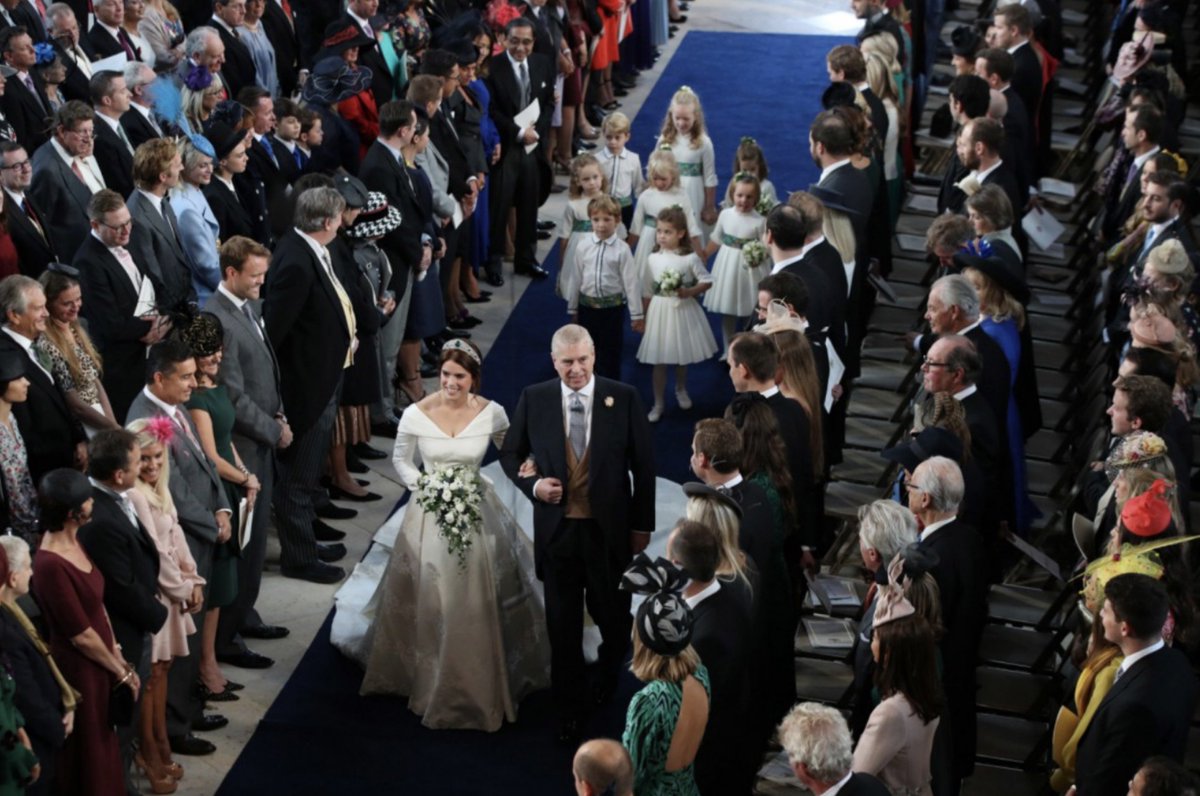 The Duke of York walks his daughter Princess Eugenie down the aisle for her wedding to Jack Brooksbank at St George's Chapel in Windsor Castle. Superb pic by @DannyLawPhoto #RoyalWedding. Follow here for updates https://www.mirror.co.uk/news/uk-news/royal-wedding-live-princess-eugenie-13401769 …pic.twitter.com/N1j7HzJvXa