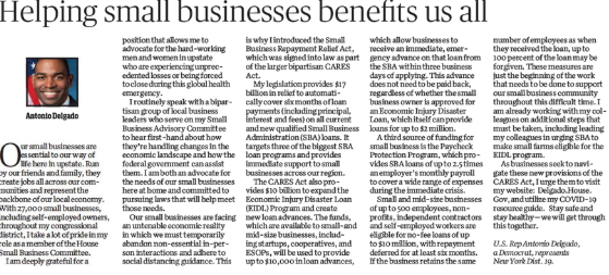 Our small businesses are facing an untenable economic reality during the #COVID19 pandemic. I wrote in today's issue of the Times Herald-Record about my work to help get our small biz community urgent loan & grant relief. We're going to get through this together.pic.twitter.com/mKb1aA6xvq