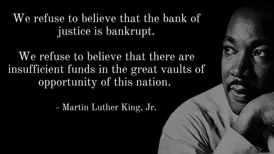 “We refuse to believe that the bank of justice is bankrupt. We refuse to believe that there are insufficient funds in the great vaults of opportunity of this nation. So we’ve come to cash this check that will give us upon demand the riches of freedom and the security of justice.”pic.twitter.com/0aMbFRcUKs