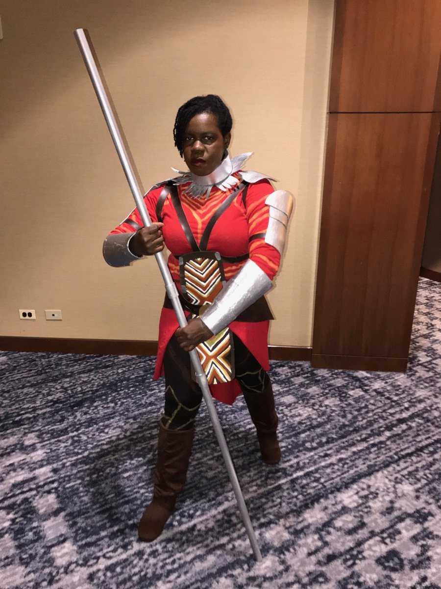trailer dropping last year. I was POSSESSED. A flurry of broadcloth, vinyl, plaster, craft foam & paint took over and I debuted her at @blerdconDC . Many more#Wakanda