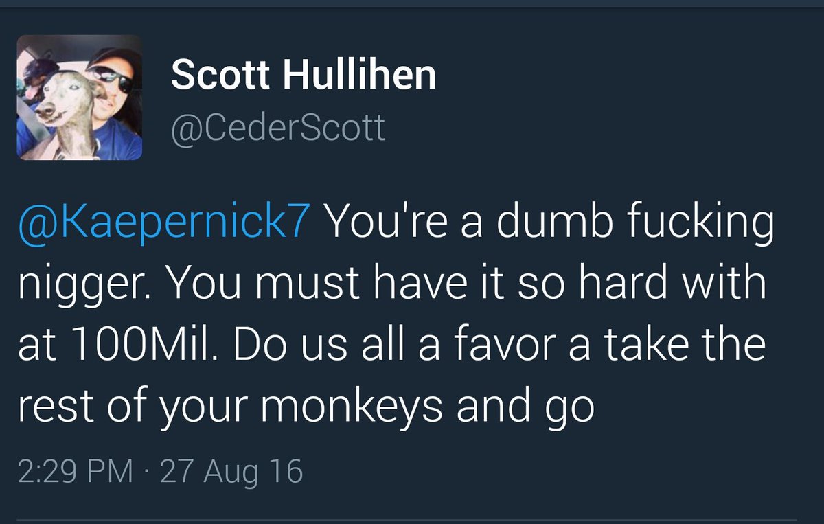 "I was hacked" is what normally follows when racists like @CederScott remember that screenshot exists. #Kaepernickpic.twitter.com/abCTFj8LL6
