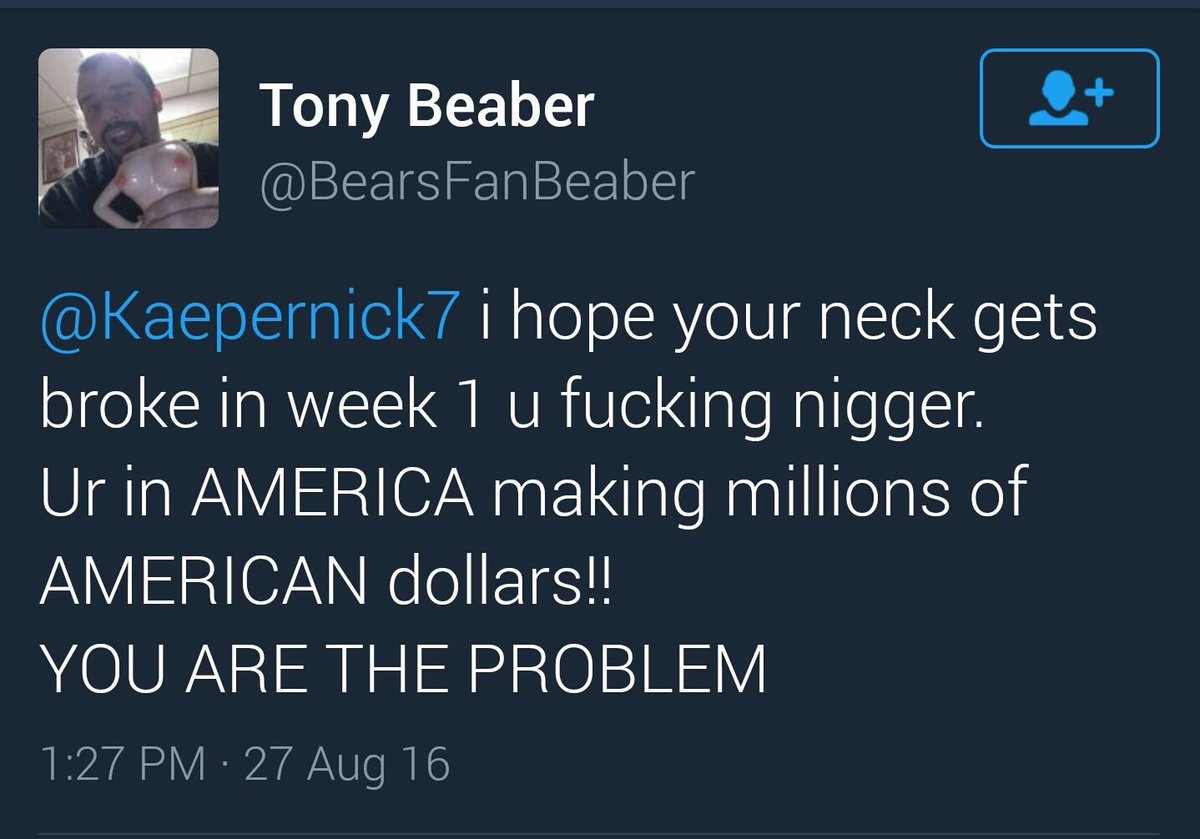 Life comes at you hard doesn't it Tony @BearsFanBeaber? #Kaepernickpic.twitter.com/X85eAiggyA