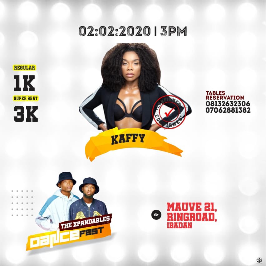 TODAY IS THE XPANDABLES DANCE FEST (DANCE IS A LIFESTYLE) Date: 2nd February 2020 Venue: MAUVE21 Ring Road, Ibadan Time: 3PM TIcket: Regular 1k / Super Seat 3k