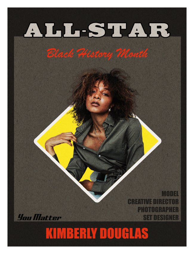 @kihmberlie A model,creative director,photographer and set designer. Kimberly is undoubtably on track to being a great due to her vision. Her ability to think outside of the box and use the materials around her are beyond inspiring.pic.twitter.com/gb6yhngifI