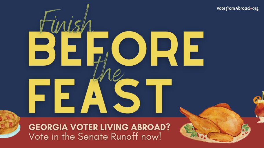 GA voters: With further mail delays expected over the holiday season, @DemsAbroad wants you to vote by Thanksgiving. Let's#FinishBeforetheFeast & make sure all Georgians abroad have their voices heard! Info on ballot return from Germany: https://www.democratsabroad.org/garunoff#FliptheSenatepic.twitter.com/UVWTReLiey
