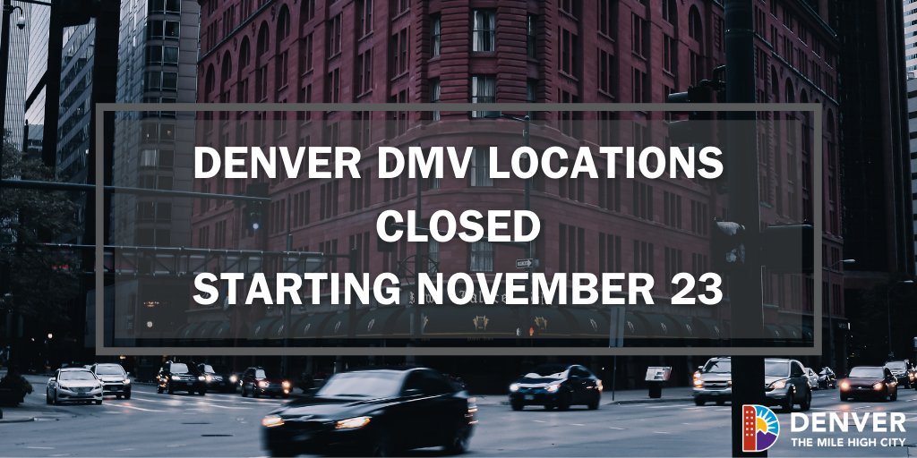@DenverPolice &@DOTI will not be enforcing expired tags in Denver until further notice. Learn more at http://www.denvergov.org/content/denvergov/en/denver-department-of-finance/newsroom/2020/DMV_Closes_TPS_Reduces_Hours_November23.html ….pic.twitter.com/8Cwzk77HQj