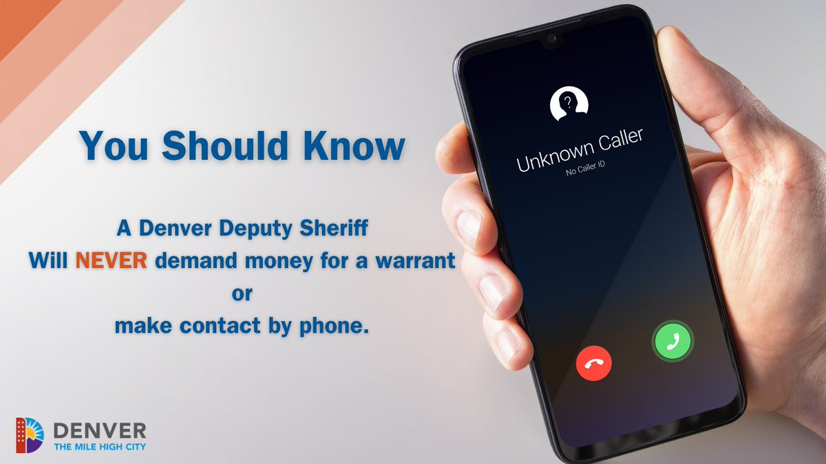 @DenverSheriff Deputy calls you & demands payment for alleged warrants, please report it to@DenverPolice &@COAttnyGeneral at https://stopfraudcolorado.gov . Check existing warrants at 720-337-0464.pic.twitter.com/ldu23iAm77