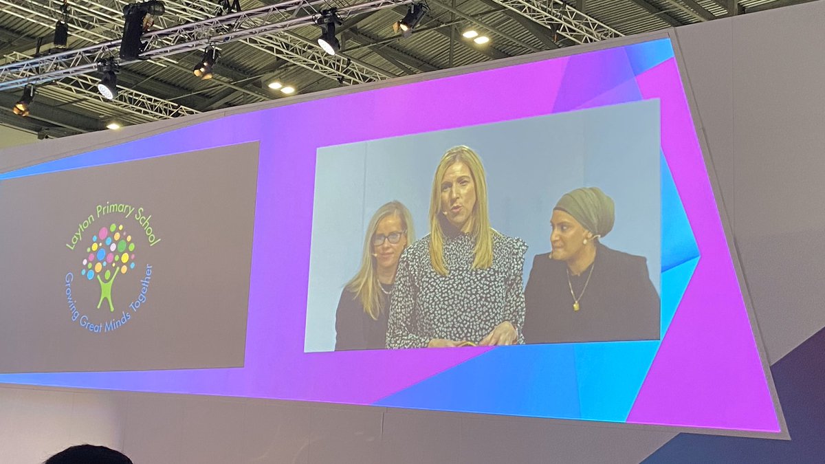 @DepHead_Jones telling the Bett Arena how Layton Primary School pupils use iPad’s to improve learning and helping the environment!#Bett2020pic.twitter.com/QETkq8Hi0v