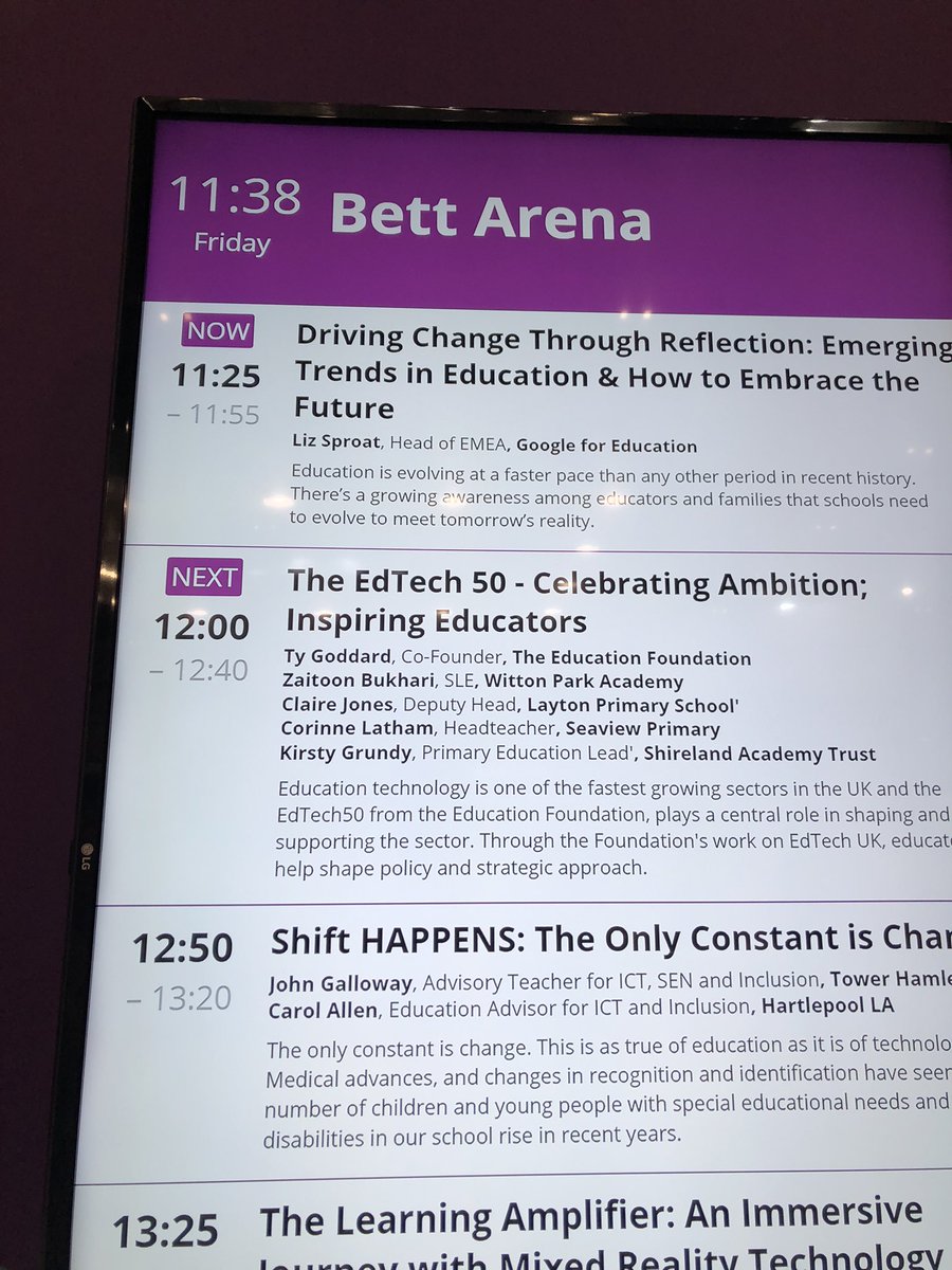 @hyve_group looked after us very well at the@Bett_show thanks to@ty_goddard for a great opportunity to speak in the main arena. Great to reconnect with lots of educational technologists from all over the UK.pic.twitter.com/vFOC1Sa9pg