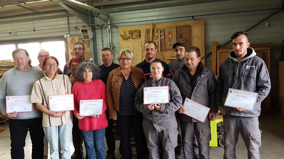 La formation leur permet d'acquérir tous les bons réflexes pour donner l'alerte aux secours et d'empêcher l'aggravation de l'état de la victime. Ce jour, 9 employés des chantiers d'insertion REEL à Boufféré et Bâti-Insert à Treize-Septiers reçoivent le certificat de compétence.pic.twitter.com/O7pCqL9w5K