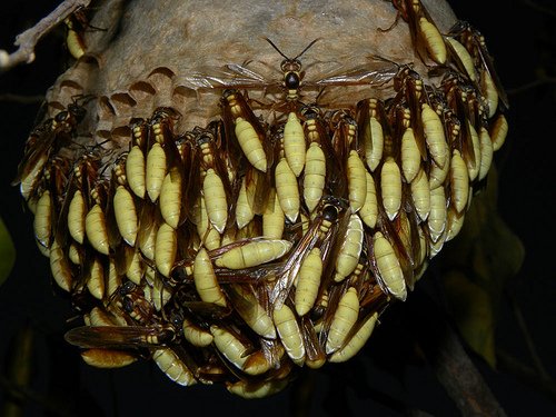 Bug of the Day: Central American Paper Wasp (Apoica pallens) Nocturnal eusocial wasp. Famous for its swarm based emigration behavior. Has developed special night vision adaptations for its night-time swarming and foraging. Native to lowlands of central & northern South America.pic.twitter.com/87JXh1PESb