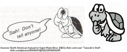 If you have ever looked at the manual for Super Mario Bros., you may remember the Koopa Troopa that introduced the "Secret Tricks" section (left). This Koopa Troopa returns in the manual for the Japanese Super Mario Bros. 2, known internationally as The Lost Levels (right).pic.twitter.com/B8x4SoqxCK