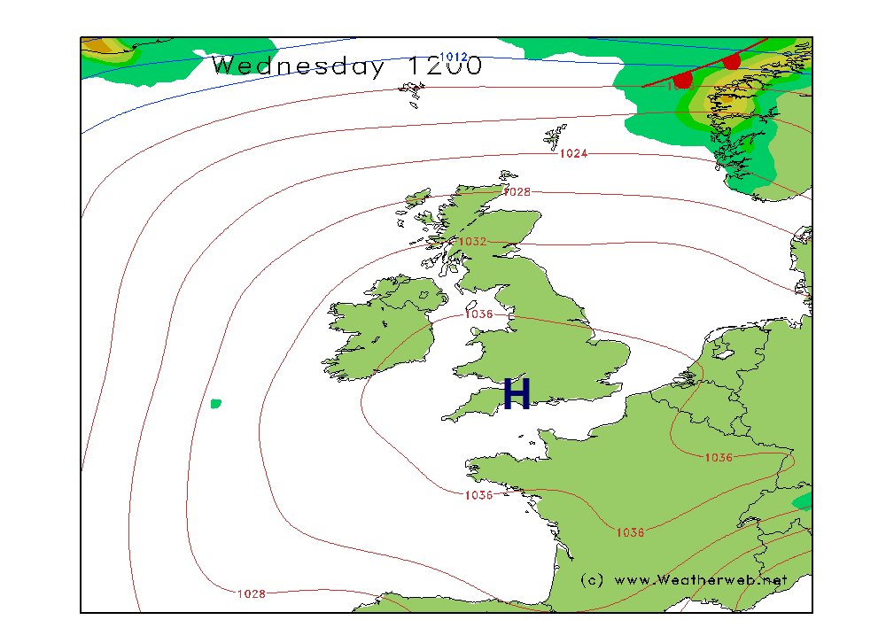 Next couple of days dry and settled thanks to high pressure. The weekend windier. Rain Friday night will clear to sunny intervals and showers on Saturday. Very windy and wet at times Saturday night and Sunday.
