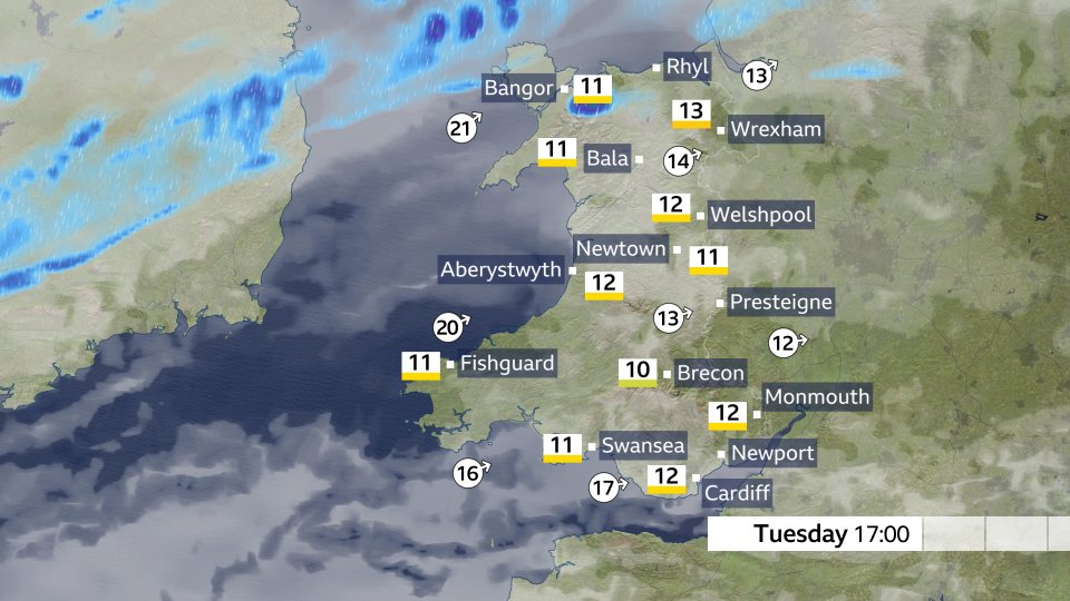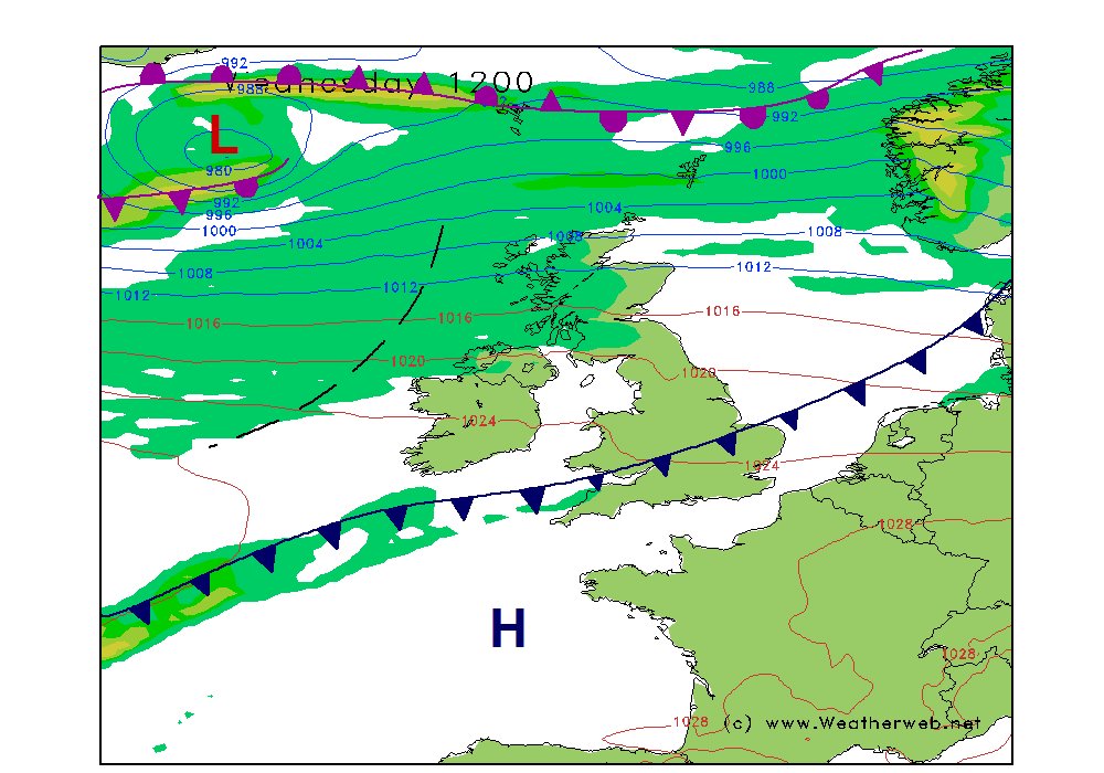 Low pressure developing over the Atlantic will move towards us tomorrow bringing another dose of wet and windy weather. Some heavy rain, especially on high ground in the south and west with fresh to strong winds.