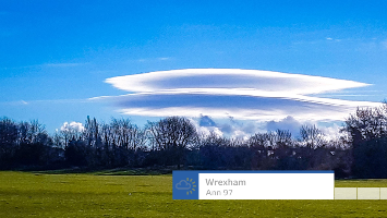 #Wales enjoyed the best of the sunshine & very mild. 14C in Hawarden. Lenticular clouds were spotted in Wrexham. Caused by strong winds flowing over the mountains. These clouds can sometimes be mistaken for UFOs! https://www.metoffice.gov.uk/weather/learn-about/weather/types-of-weather/clouds/other-clouds/lenticular …pic.twitter.com/xOOe5Sv0CF