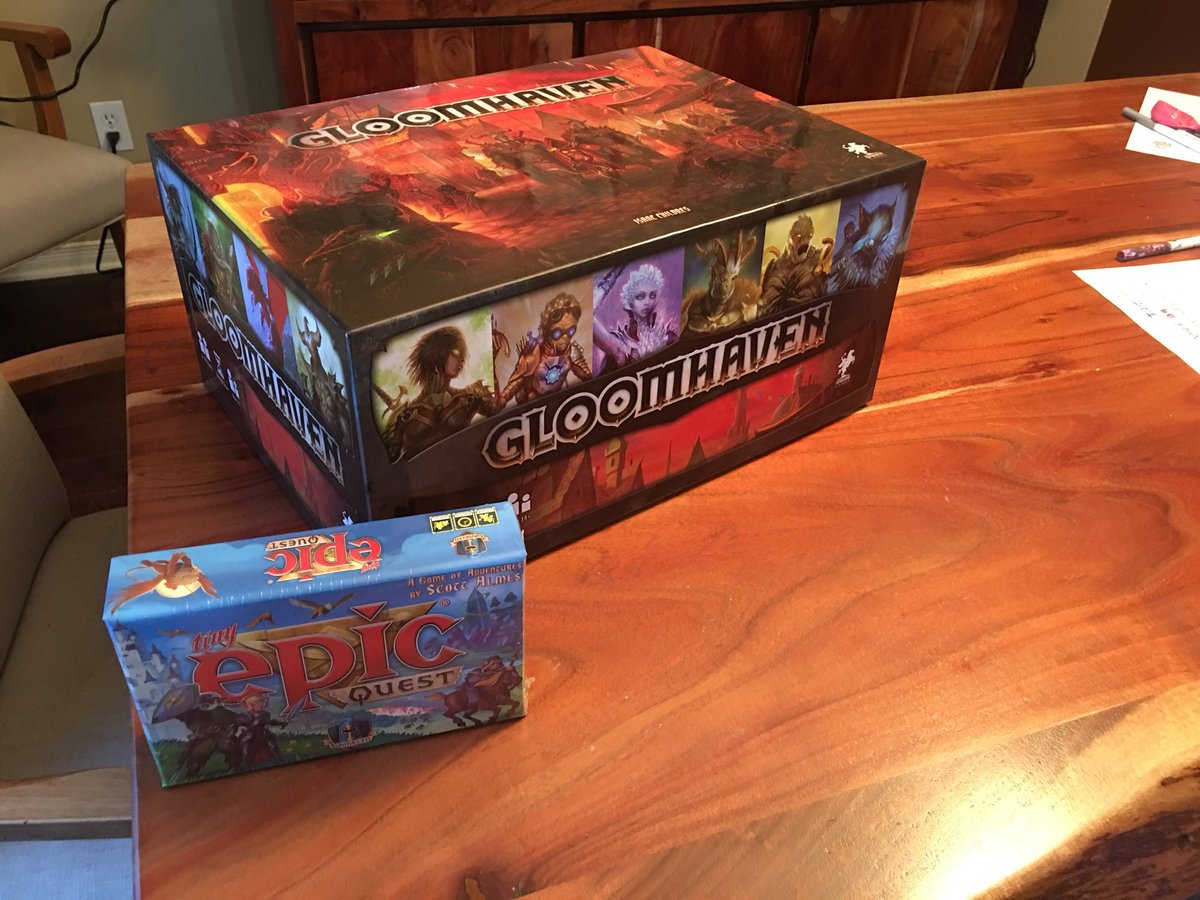 Just received Gloomhaven & Tiny Epic Quest. Talk about size contrast...pic.twitter.com/PMBGarCoCr