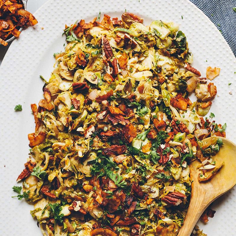 DELICIOUS dinner idea! Brussels Sprout Slaw w/Coconut Bacon! Crunchy, tangy + EASY to make! 30-mins + ready! http://mnbkr.com/2jdtH28