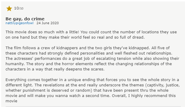 We know we're a love-it-or-hate-it kinda movie (and that's cool), but we personally love it when someone really gets it (and writes our all-time favorite review title while they're at it).