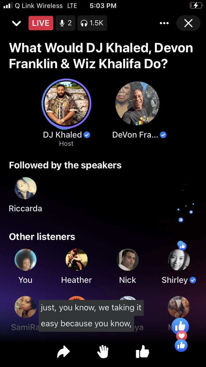 @djkhaled and@wizkhalifa are chopping it up on Facebook Audio LIVE right NOW about career, faith, family, love and relationships. Come in and join our conversation