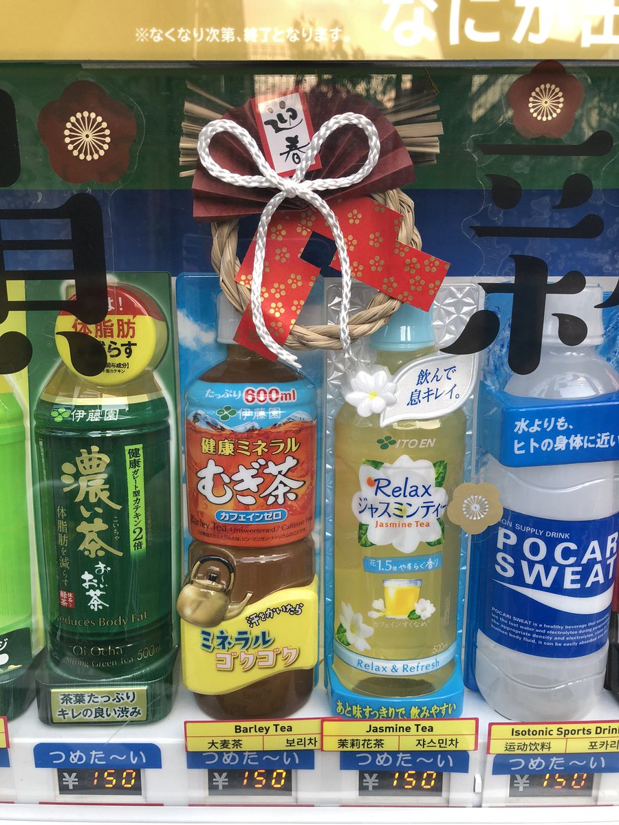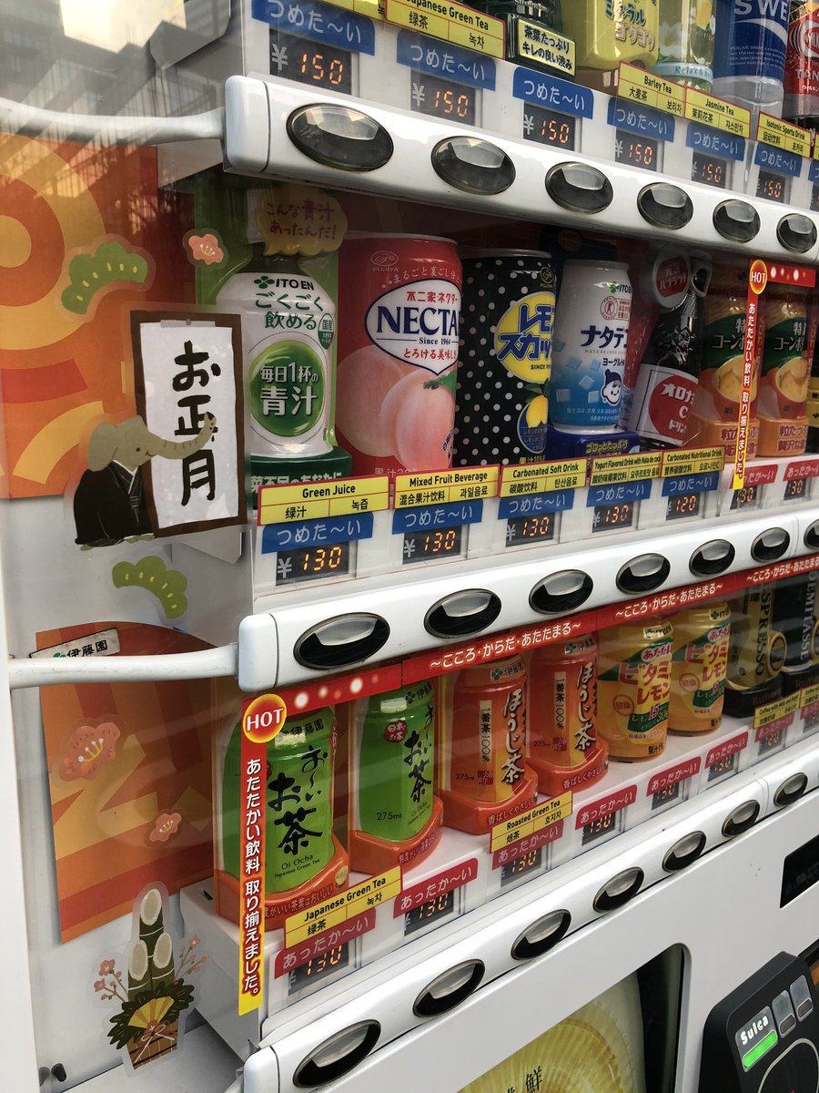 This vending machine was still decked out in cute New Year decorations a week ago. So cute, plus the English signs explaining each drink inside is a nice touch