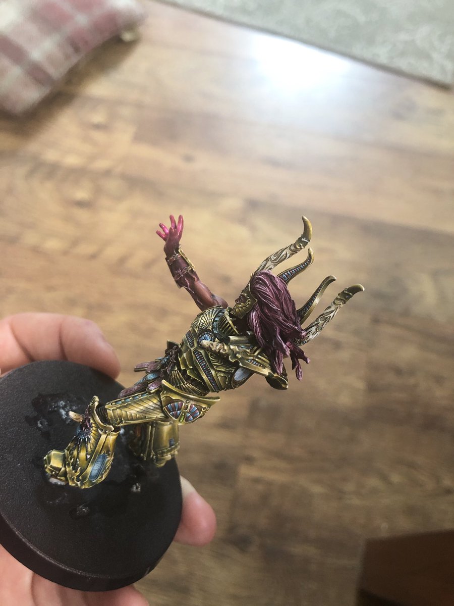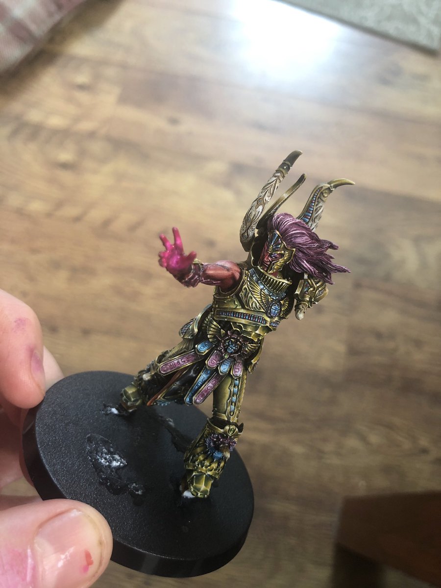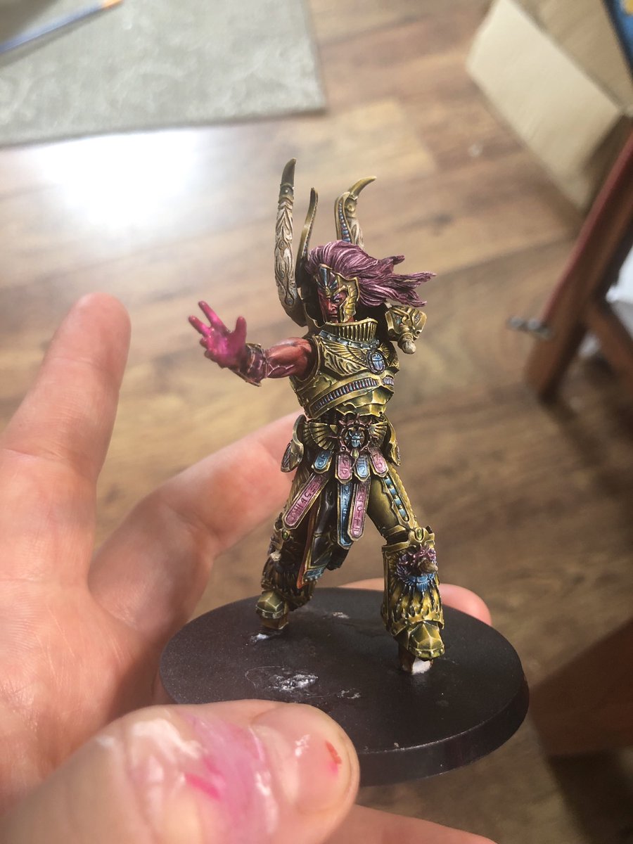 The Magnus Journey continues. Was hoping to staff/sword thing done, but put in down as struggling with it. So painted an arm and face! Playing with pink fluorescent paints which I think is cool. Adds shine to model me thinkspic.twitter.com/IjzVQXl767