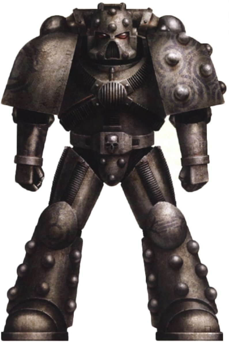 I think it's kinda slightly metallic mid grey? Some art in there heresy books shows it this way, although I think it's not a hard and fast thing, one Rogue Trader piece said it was white. My head cannon is it can come in different colours as it's cast from powders and solvents.pic.twitter.com/4ZJJBWozeO