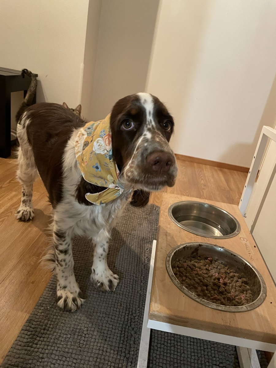 Olive clearly loves her bandana. It keeps her ears from getting into her good. Doesn’t she look absolutely thrilled?pic.twitter.com/FsWRO0ZIzP