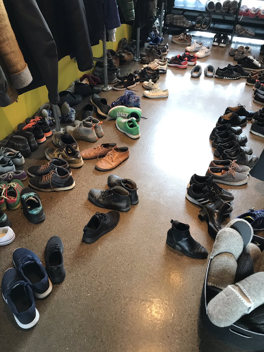 That's not uncommon in Northern Europe. Slippers are usually provided for visitors. I remember my first visit to a Norwegian museum - no