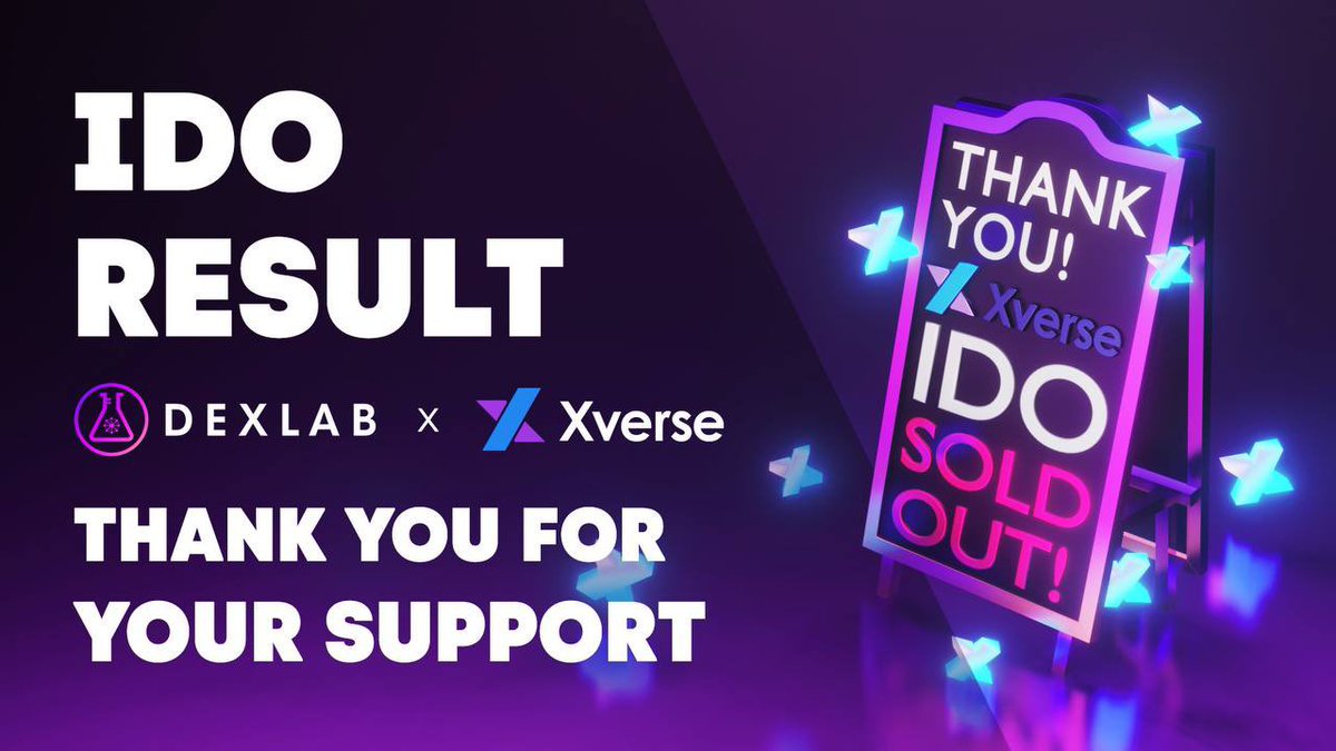 @Xverse_official$XVC is completely SOLD OUT at Dexlab#IDO! IDO Price: 0.065$ = 1 XVC Claim: 12/4th 15:00 UTC Listing: 12/4th 15:30 UTC Listing on:@Dexlab_official Claim: https://bit.ly/32X6aey pic.twitter.com/Lw3soqWq4s