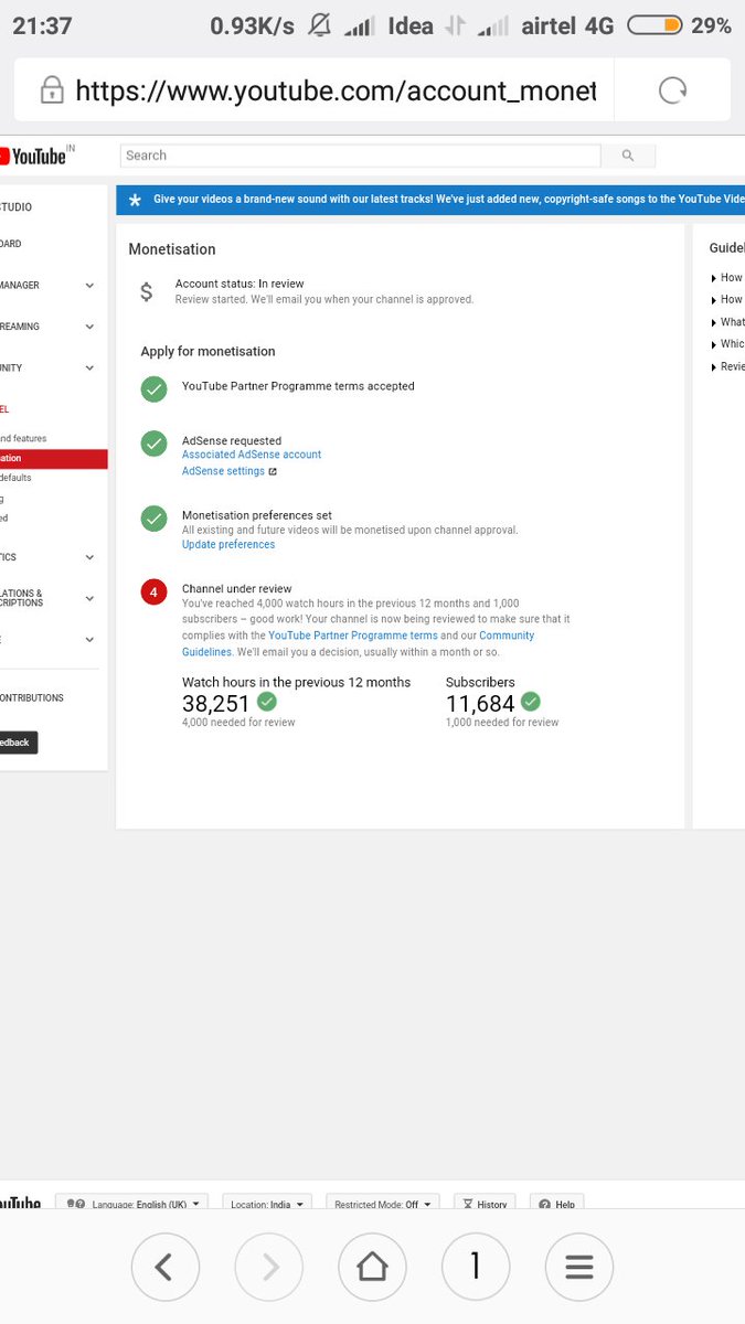 @TeamYouTube I have completed my 1k subscribers and 4k watch time hour but my monetisation has not enabled please enable my monetisation and why monetisation is not enabling. Many YouTuber which has only 1k subscribers+ their monetisation has enabled and I have completed 10k Subpic.twitter.com/3dj2p7n2Vr