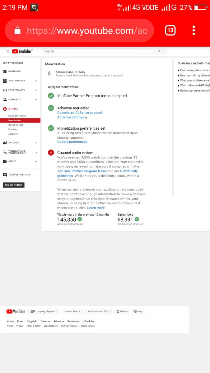 Can you monetize my channel please? I have over 1000 subscribers and have surpassed all the requirements @TeamYouTube , this is my channel:https://m.youtube.com/c/lavishkidd