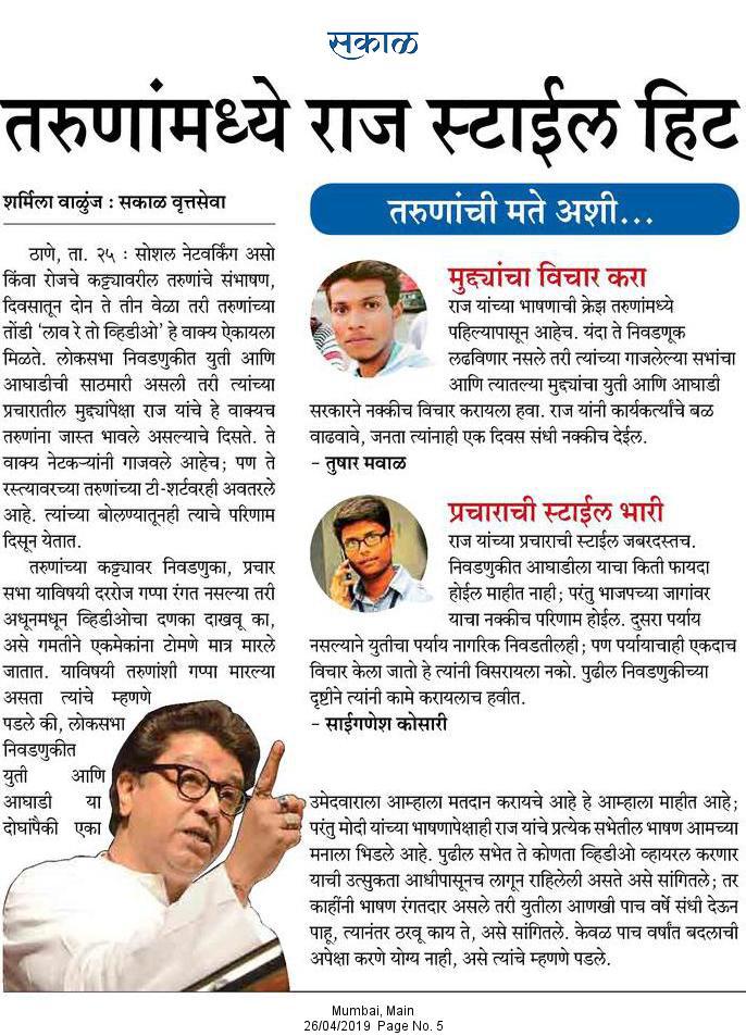 आजच्या दैनिक सकाळच्या मुंबई आवृत्ती मधील मनसे अध्यक्ष मा.राजसाहेब ठाकरे यांची विशेष मुलाखत तसेच मा.राजसाहेबांनी मोदी-शाह यांच्या हुकुमशाही विरोधात घेतलेल्या बेधडक-सडेतोड भूमिकेबाबत जनसामान्यांच्या प्रतिक्रीया.