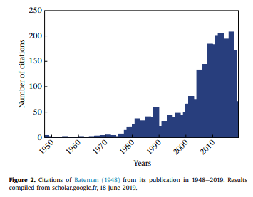 Interesting article by Hoquet on the history of Bateman, 1948: 'how much contradictory data must accumulate before we are willing to let go of Bateman's ideas as the unique and universal explanations for sex differences in reproduction?'