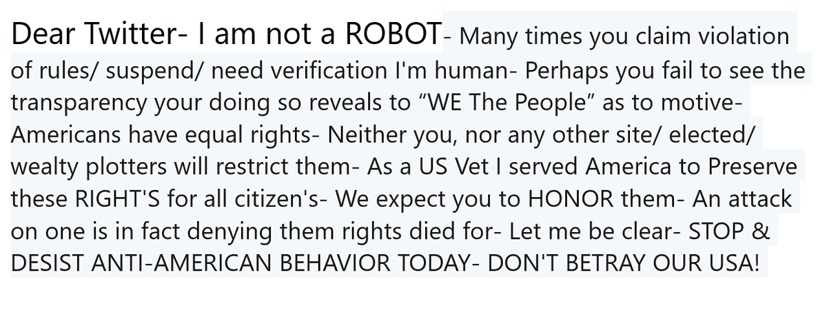 In the Land of the Free- Why can't my tongue be? Who seeks 2 muzzle me- From speaking of what I see? As a Vet I helped insure Liberty- From sea 2 shining sea- Now Facebook/Twitter etc. are the deciders 4 our country? Created to be equal and free for all eternity- RT if you agree!pic.twitter.com/ZbyyeUNjRz