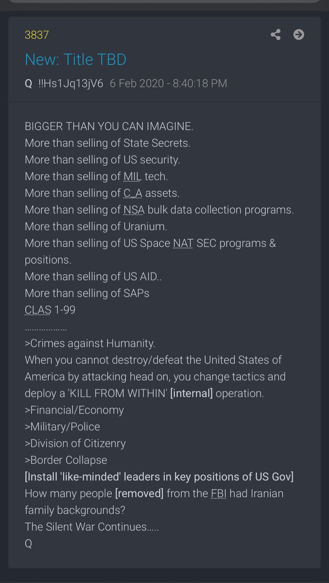 BIGGER THAN YOU CAN IMAGINE. More than selling of State Secrets. More than selling of US security. More than selling of MIL tech. More than selling of C_A assets More than selling of Uranium. More than selling of US Space NAT SEC More than selling of US AID.. CLAS 1-99
