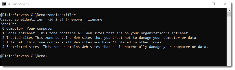 New blog post "zoneidentifier.exe" https://blog.didierstevens.com/2019/12/25/zoneidentifier-exe/ …pic.twitter.com/NoMvjYJ0Qx