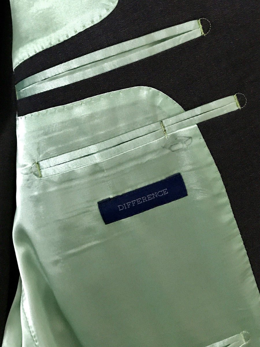 PPとDIFFERENCEコラボの宜野座スーツ。家人の体型に合わせてカッコよく仕立てていただけました。着用写真はご勘弁を。 裏地がかなり派手目なグリーン。pic.twitter.com/NwjujLjZjR