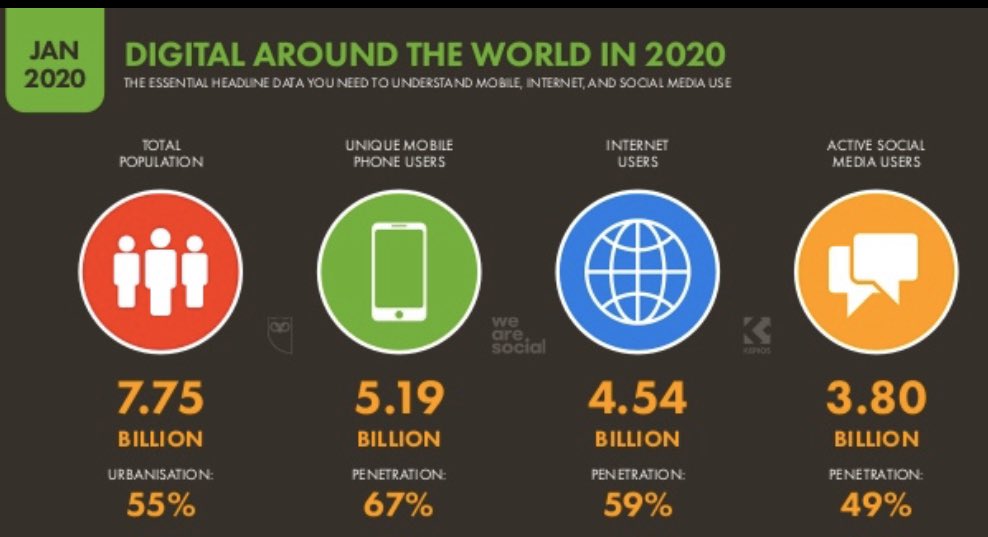 #socialmedia users passed the 3.8 billion mark. Nearly 60% of the world’s population is already online, & latest trends suggest that more than 50% will use social media by the middle of this year.#internet#digitaltrends2020pic.twitter.com/a5hdh3VkHs