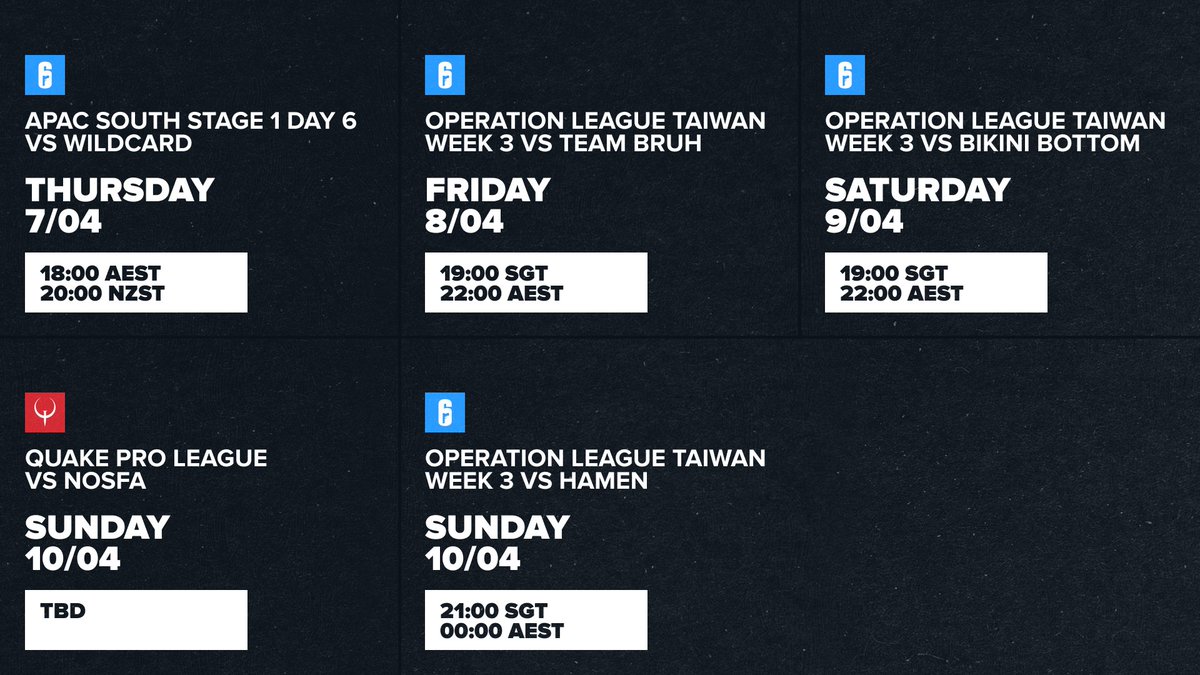 Here's an outlook to our upcoming Week! Some important games in Rainbow Six and QPL is back!