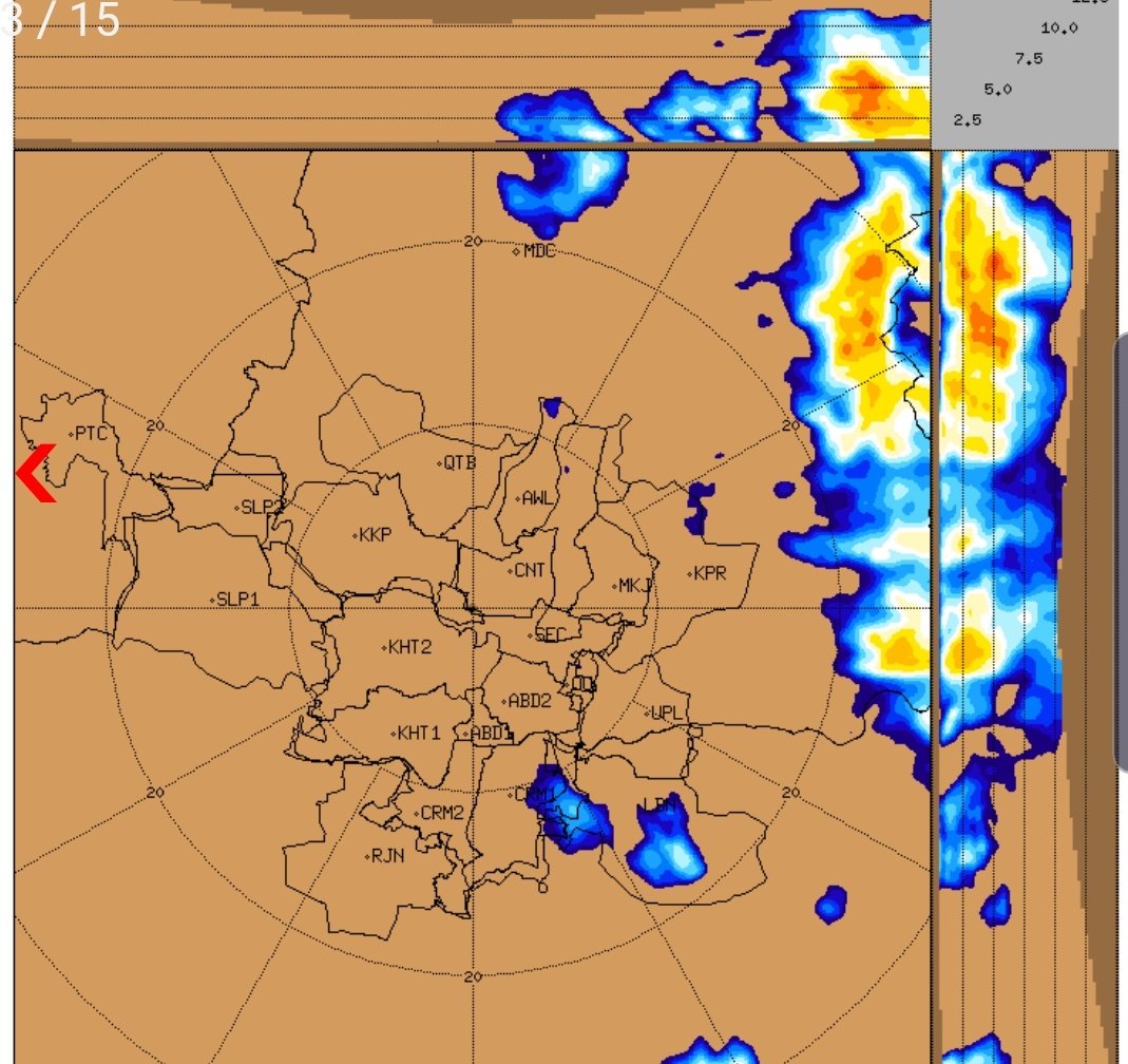 Heavy rainfall just missed!! 1) Radar image 45 min ago with a wall cloud potentially causing heavy rains in city & Northern districts 2) Wall broken