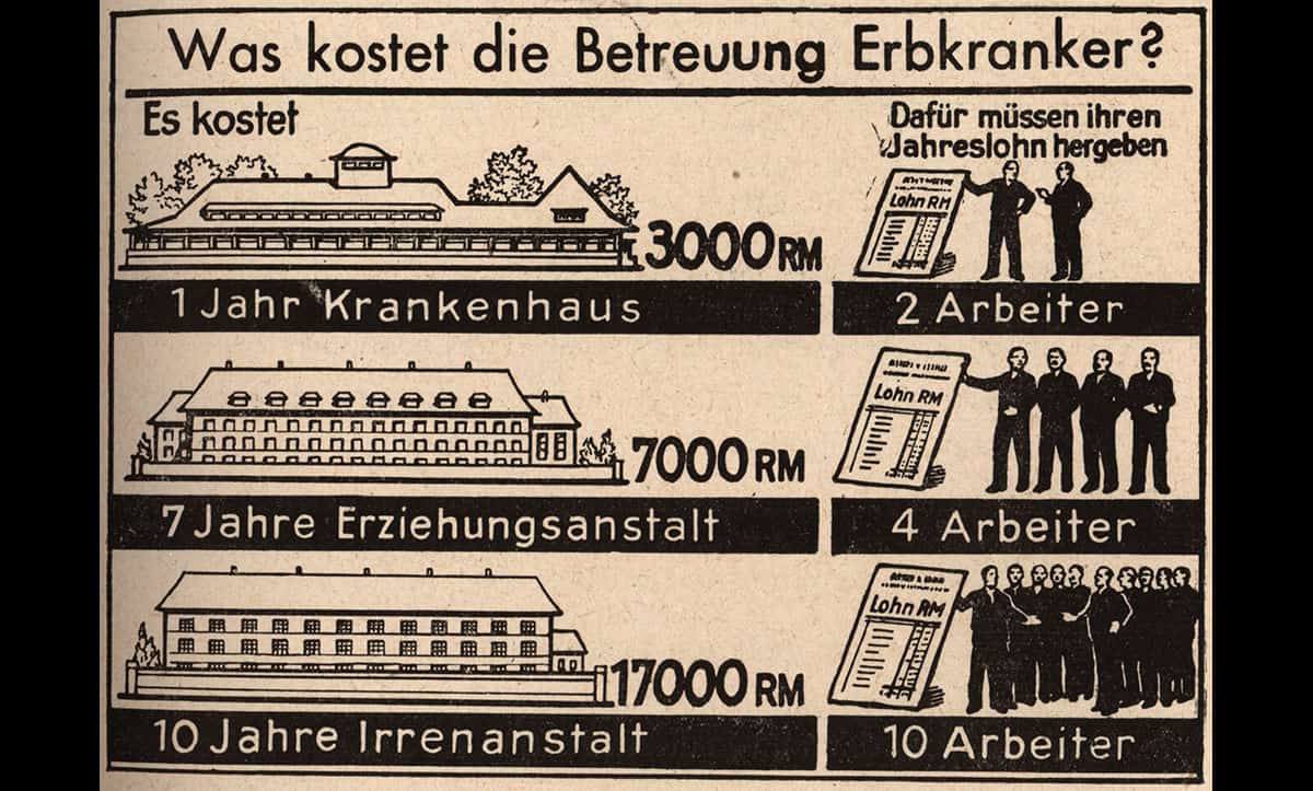6. By the 1930s, Nazi propaganda posters, news-reels & cinema films portrayed disabled people as "useless eaters" and people who had "lives unworthy of living" and argued that 'hereditary disease' cost the state as much as it cost to support an entire family #DisHist /pic.twitter.com/BrS2gkQWyQ
