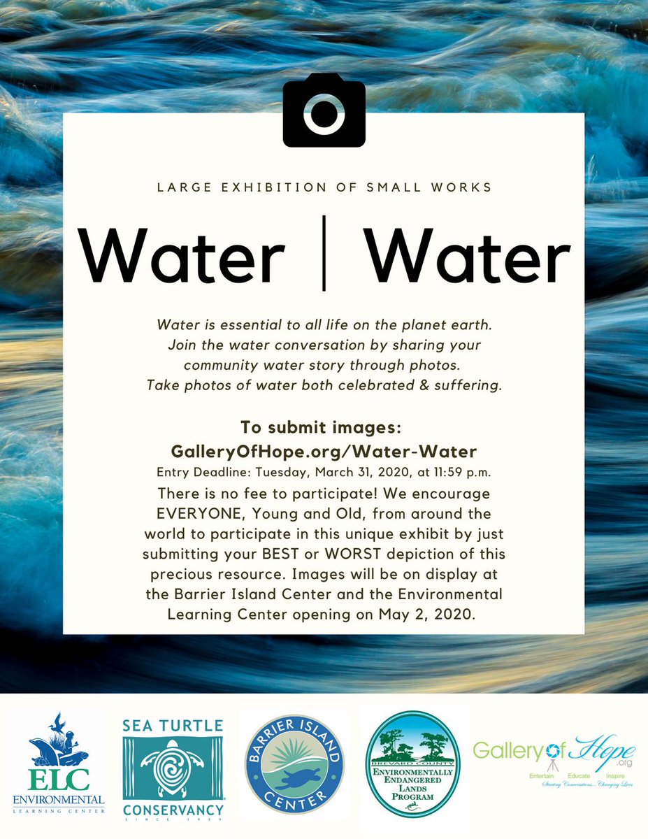 We want to see YOUR best and worst depiction of water. Submit your photos for free at https://www.galleryofhope.org/Submission-Info-Water-Water … and see them on display at the ELC and Barrier Island Center in May!pic.twitter.com/5MDvyQC1TQ