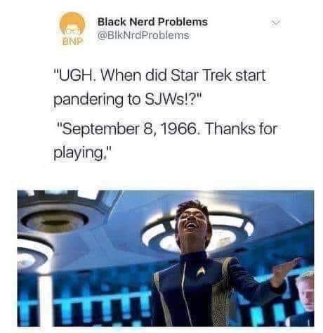 MyLRT:Whew. when i tweeted out that star trek tweet for bnp i did not expect it to go to all the corners of twitter where 1.) people missed the joke and 2.) people got angry for *checks my notes* missing the point of the joke. i still laugh about it to this day.pic.twitter.com/unygVVdvRF