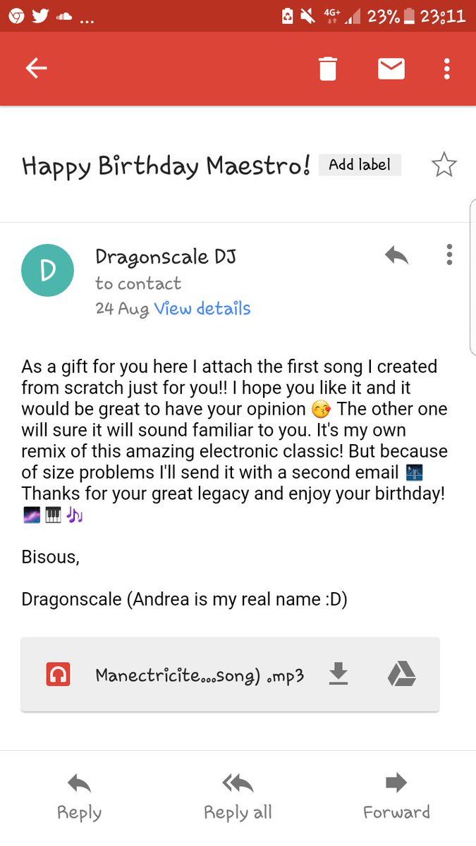 @TeamYouTube la última prueba física que os puedo adjuntar es este correo que envié a Jean-Michel Jarre con la canción por su cumpleaños. ¿Qué más pruebas queréis porque mi paciencia tiene un limite?pic.twitter.com/5vhOoMzxtE